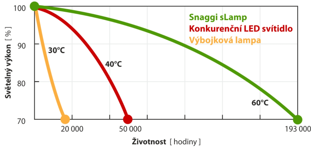 svítidlo – 10 let (včetně záruky na maximální pokles svítivosti na 70% původní hodnoty) L70B20